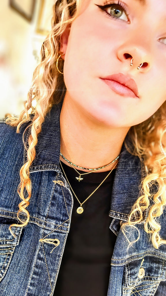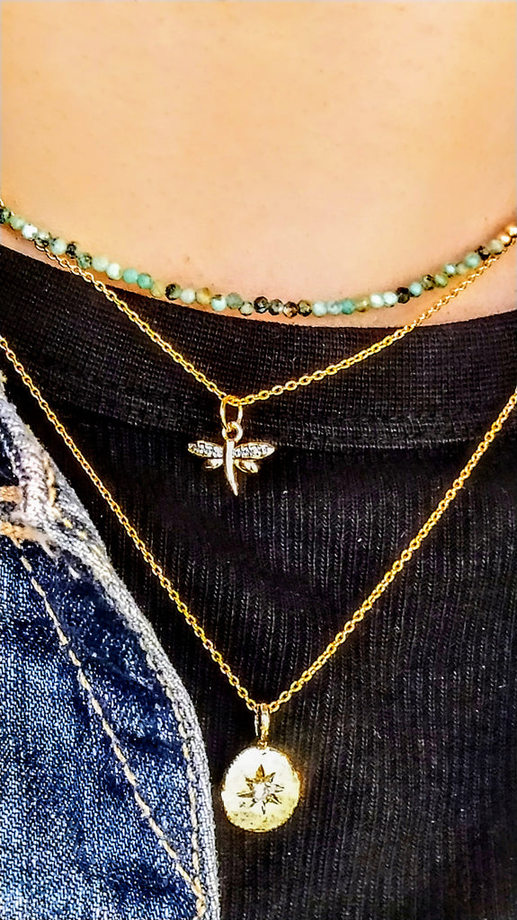 A simple statment necklace with a shooting star pendant suspended from a delicate gold chain. This is a perfect gift for yourself or a loved one. Wear solo or a special price to layer with another gold necklace.